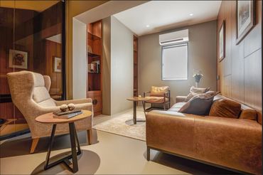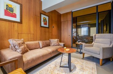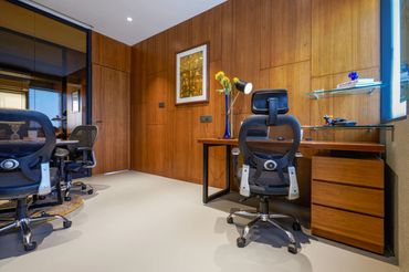 A refined executive office suite designed for the CEO and partners of Encore Healthcare, located in the iconic Ballard Estate. This floor hosts private cabins, lounges, and meeting areas tailored for leadership and client interactions, while the main operations continue on other levels.